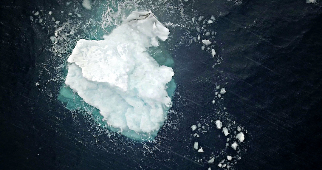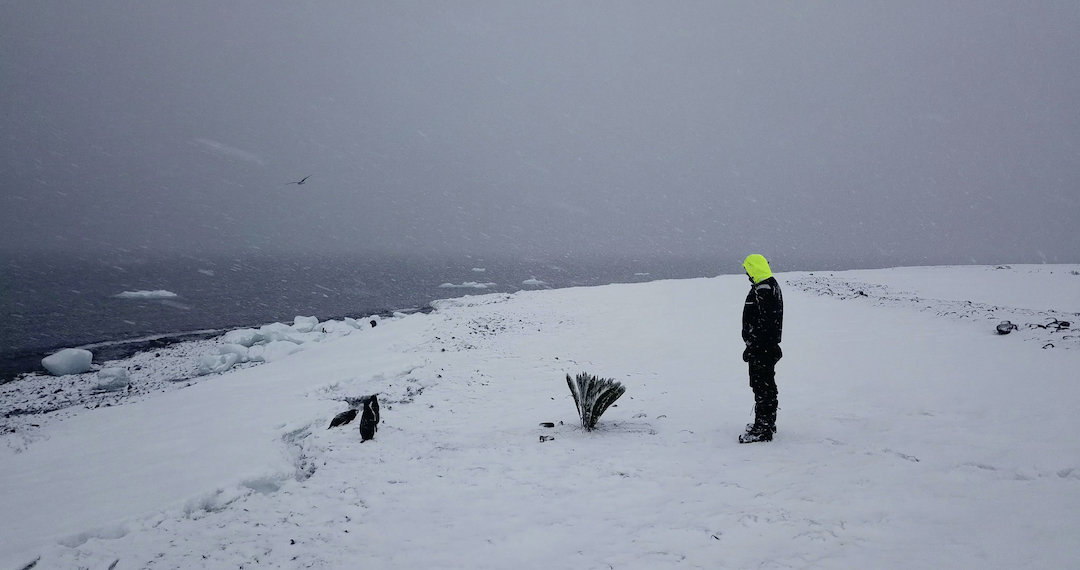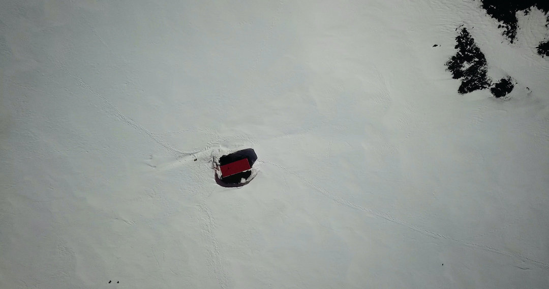 Stellen wir uns vor: Ein schnatternd-knatterndes Alien in einem unbekannten Flugobjekt erkundet die Antarktis. Weder ahnt es, dass es sich hierbei um einen klimawandelbedingt verschwindenden Landstrich handelt, noch weiß es, dass der Rest der Welt etwas anders aussieht. Es wundert sich also, das Alien, und uns, die wir seinen zwischen Neugier, Erstaunen und Frustration pendelnden Drohnenflugfilm betrachten, dämmert mehr als nur der Zusammenhang zwischen Meteoriten, Dinosauriern und unewigem Eis. Möglicherweise sind dies ja bereits die Bilder der Zukunft: Einer der letzten Überlebenden zieht einen Palmwedel aus dem Eiswürfel- wasser und die Pinguine wundern sich. (Alexandra Seitz)
