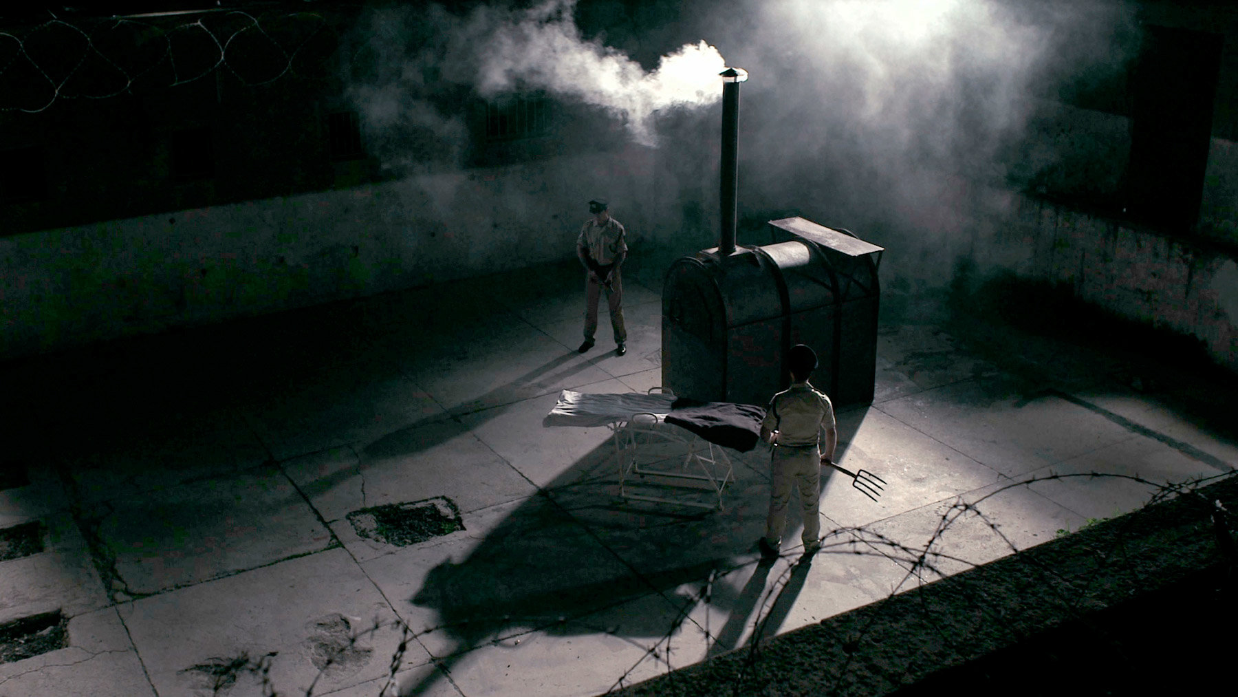 On April 11, 1961, the trial of Adolf Eichmann began. He was tried in an Israeli court and charged for committing crimes against humanity and war crimes. He was convicted and executed by hanging on May 31, 1962. On a night, between the 31st of May and the 1st of June 1962 shortly after the execution and the cremation of the body, a group of police officers sailed on a boat 6 miles off the shores of Jaffa port. Their mission was to scatter Eichmann’s ashes into the international waters of the Mediterranean Sea. The purpose of the highly secret mission was to ensure that there could be no future memorial and that no nation would serve as his final resting place. Based on an interview Dani Gal made with Michael Goldman, a Holocaust survivor who was one of the policemen on the boat, the film re-enacts the scene of the group of policemen sailing on a dark foggy night with Eichmann’s ashes in a jug of milk.