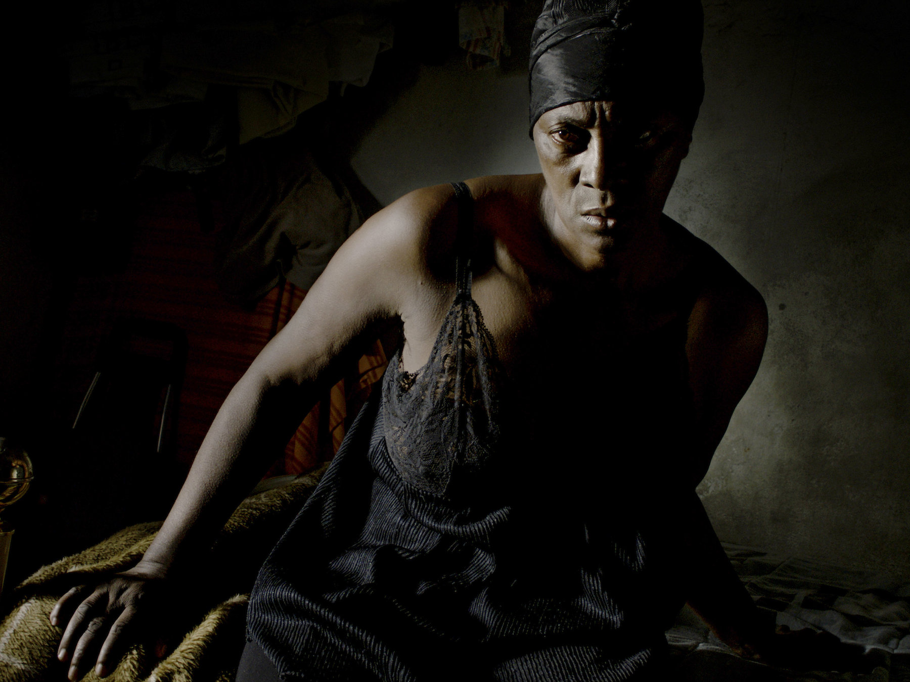 "Dans l’obscurité somptueuse d’un quartier traversé d’ombres hiératiques, soudain le rouge de draps sanglants. Arrivée trop tard, Vitalina Varela n’a plus qu’à gérer les affaires de son mari défunt. Elle ne pleurera pour aucun malheureux : face aux hommes rongés ou déchus, elle s’attelle à rebâtir, plan après plan, mur après mur, contre la triste réalité d’une vie n’ayant pu se construire au Portugal sous un toit décent, le souvenir d’une solide maison commune au Cap-Vert."